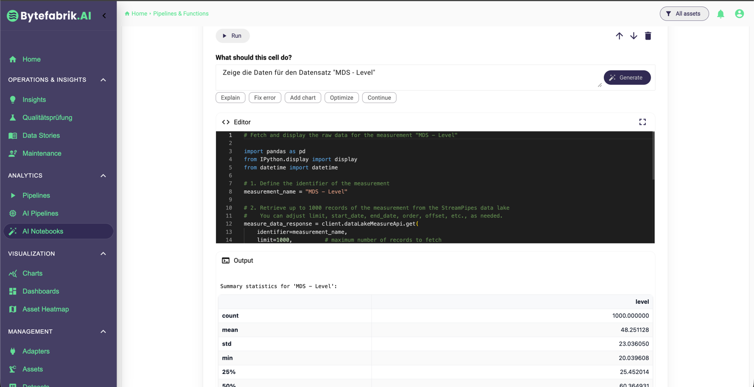 AI Notebooks helfen Unternehmen dabei, gespeicherte Maschinendaten schneller zu verstehen. Auch ohne Programmierkenntnisse lassen sich Analysen per Sprache starten, Ergebnisse als Tabellen oder Visualisierungen aufbereiten und nächste sinnvolle Auswertungsschritte direkt fortsetzen.