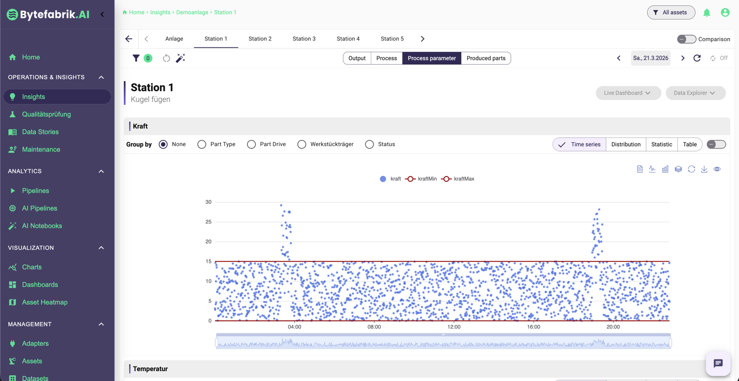 Jedes produzierte Teil im Kontext von Station, Prozess und Grenzwerten betrachten.