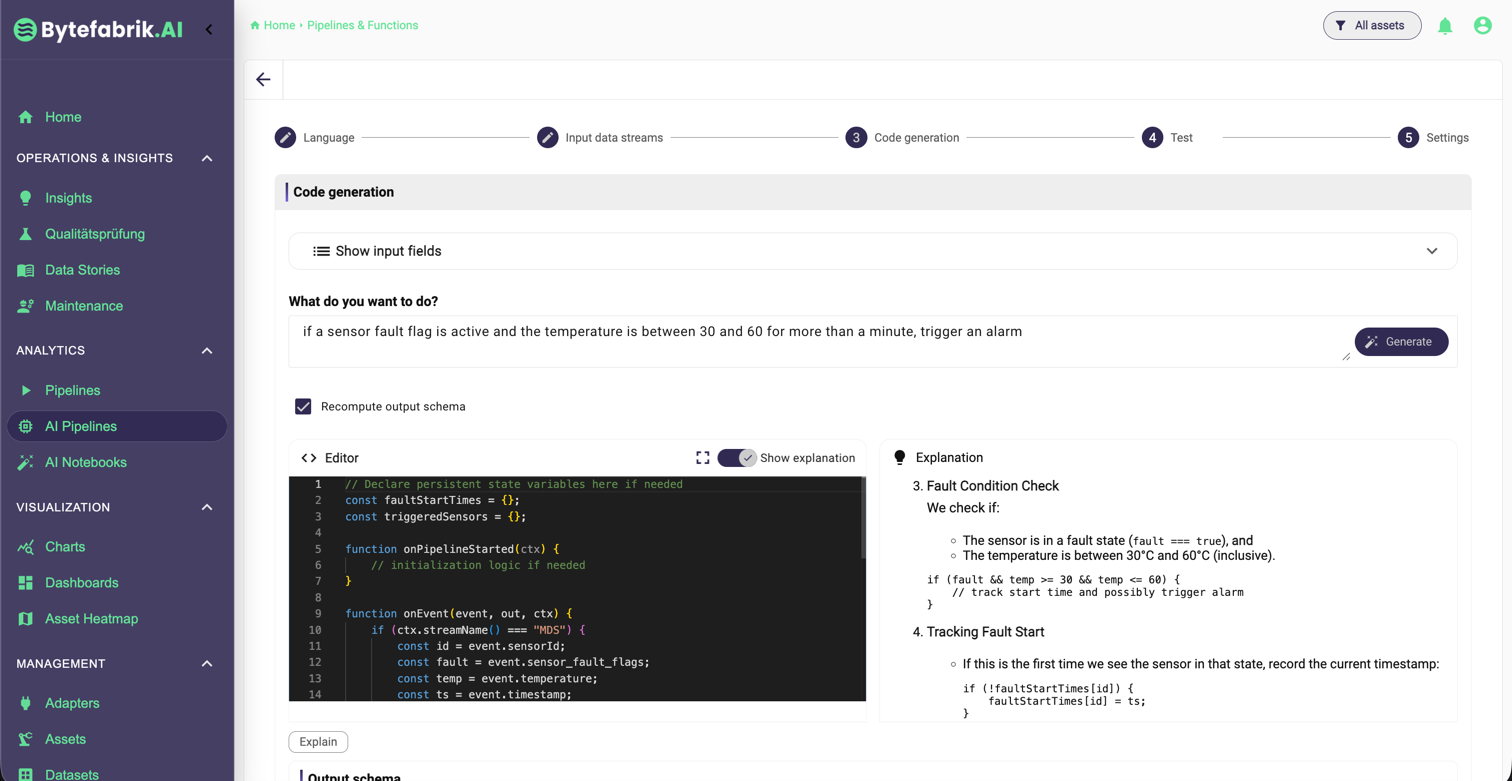 AI Pipelines helfen dabei, laufende Maschinendaten automatisch zu überwachen, Muster früh zu erkennen und Ergebnisse direkt für Reaktionen im Betrieb nutzbar zu machen. So werden aus Live-Daten schneller konkrete Hinweise, Aktionen oder Benachrichtigungen.