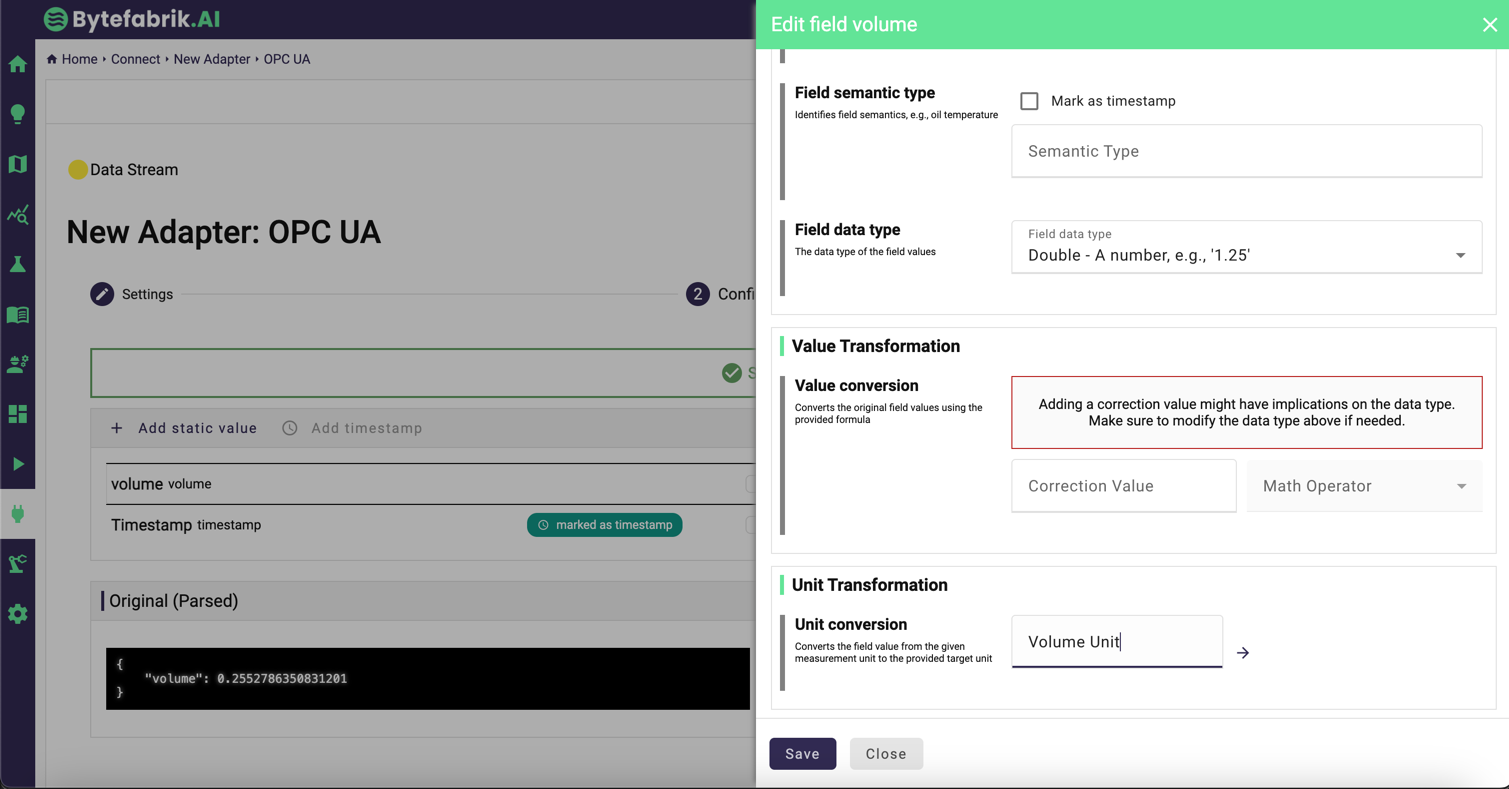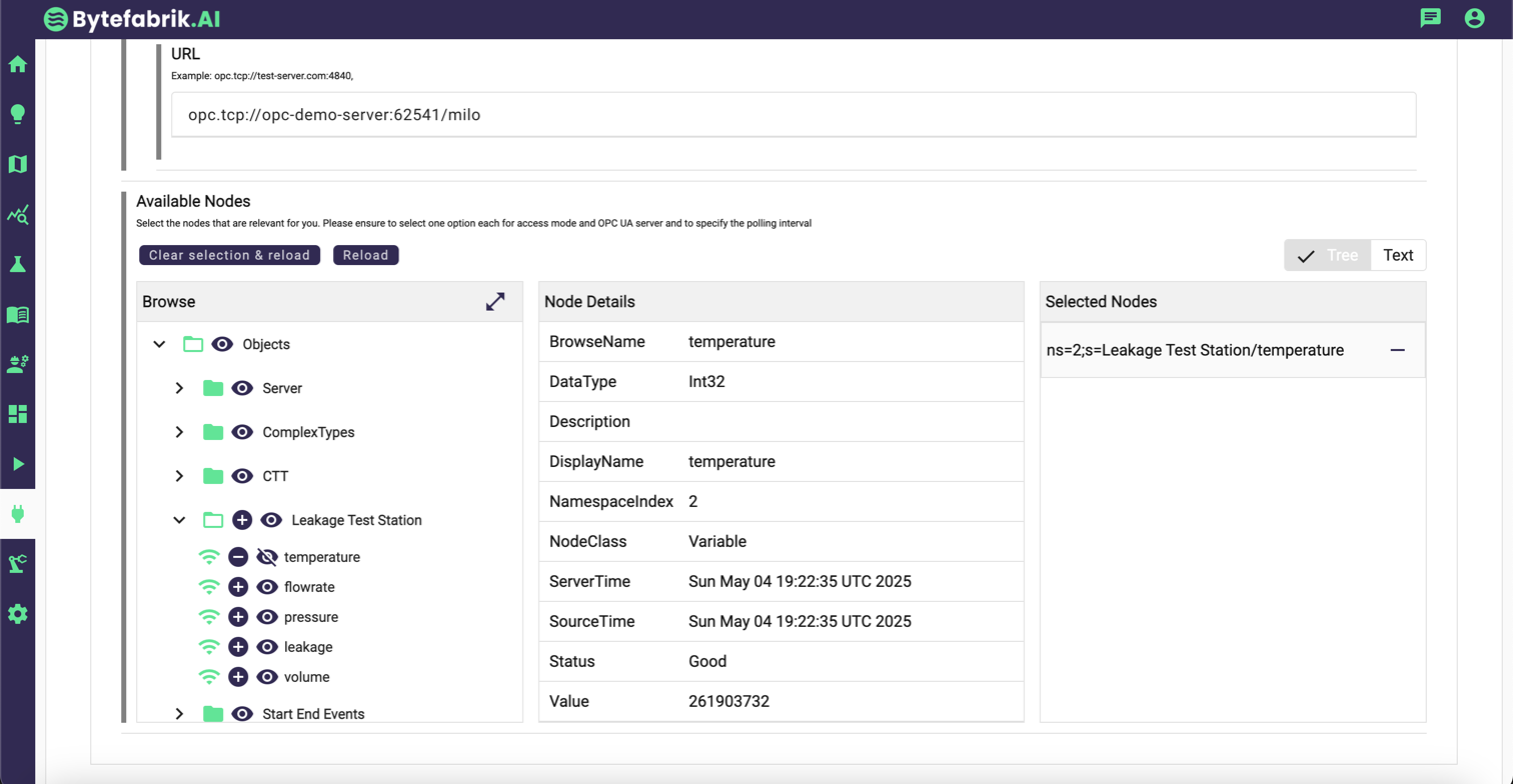 Die Erstellung eines neuen Konnektors erfolgt wahlweise über eine intuitive webbasierte Oberfläche (bei OPC-UA mit einer kompletten Baumnavigation) oder programmatisch über JSON- bzw. YAML-Definitionen. So können Sie auch große Installationen einfach verwalten.